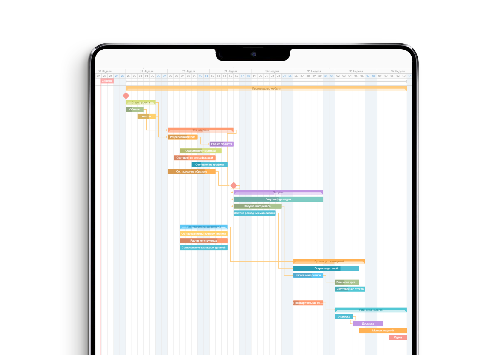 Для каждого проекта мы составляем наглядный график выполнения работ, согласно которому производятся все изделия и контролируются сроки изготовления.